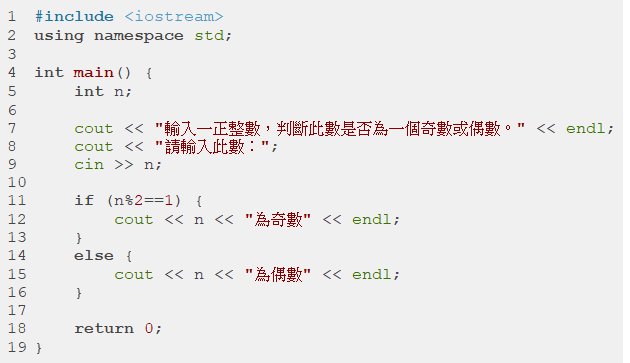 輸入一正整數,判斷此數是否為一個奇數或偶數。 請輸入此數:55 55為奇數