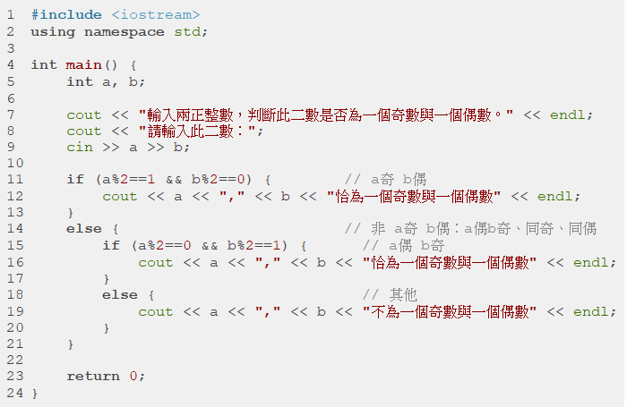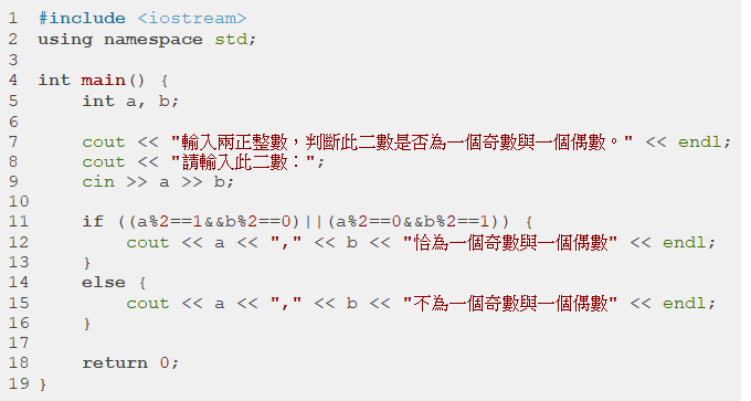 輸入兩正整數,判斷此二數是否為一個奇數與一個偶數。 請輸入此二數:55 55 55,55不為一個奇數與一個偶數